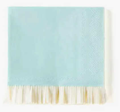 Stylish and simple, these blue cocktail napkins are the perfect way to finish setting the goodie table for your baby shower. With a festive fringed edge, these 5" napkins will tie up the tablescape of a sweet little shower for the mom to be. • 25ct Fringe Napkins • 5"x5" Cocktail Napkin