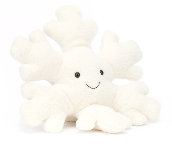 Amuseable Snowflake is all tired out from dancing about on the winter breeze! This double-cream cutie has a happy grin and a beany bottom to sit up well. With supercool squishy detailed branches, our scrumptious snowflake gives comforting cuddles.
