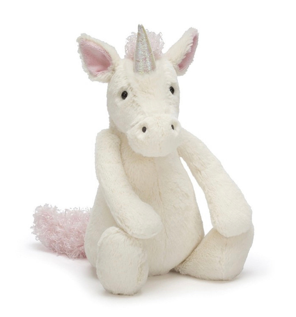 Sugar-sweet in pink and white, Bashful Unicorn is such a delight. Full of magic and moonlight, she loves the forest, so be sure to take her on any picnic. So very cuddly, with squish-squashy hooves, even her horn is shimmery-soft.