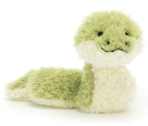 Little Snake is inquisitive, and likes to chat to the people they meet. This bright-eyed snake has the cutest stitch smile and a wriggly weighted tummy, and sits up proudly in green and cream curls, waving their tail in greeting.
