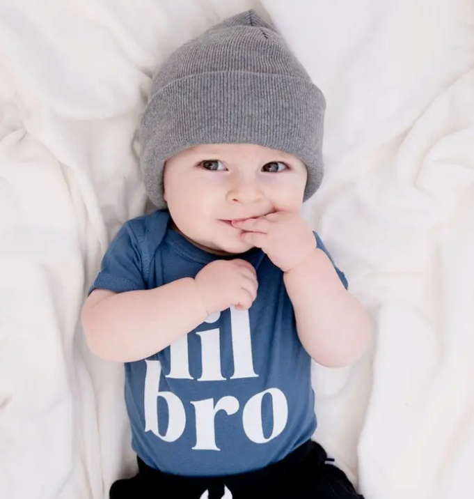 Customers love to dress their first born in this tee shirt as a way to announce that a new little brother or sister is on the way. Once the gender of the new baby is revealed, coordinate this tee with a lil sis or lil bro outfit for an adorable sibling pairing.