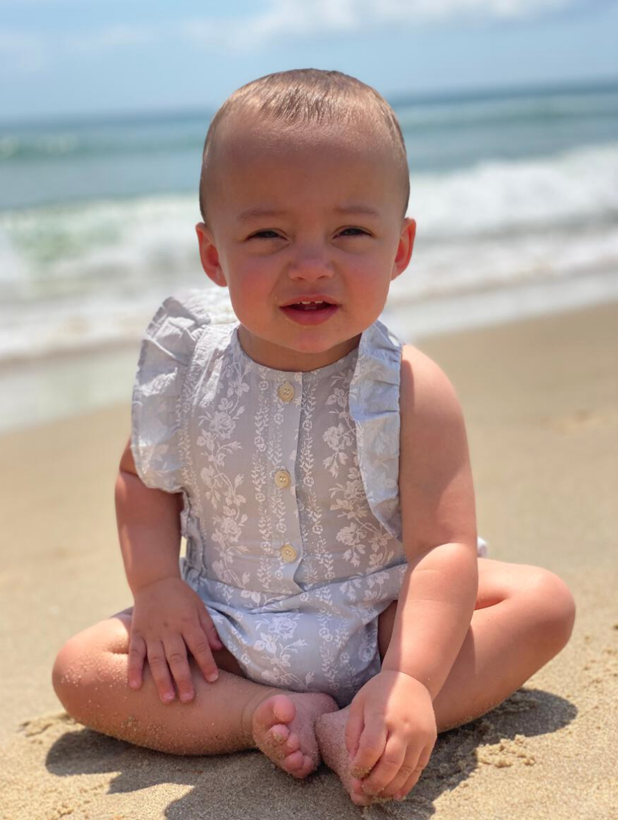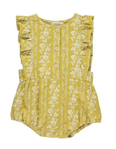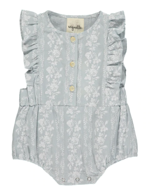 Our new Megan Bubble is so lovely for baby in super soft double gauze fabric with ruffle sleeves, accent buttons, and snaps for easy changes.