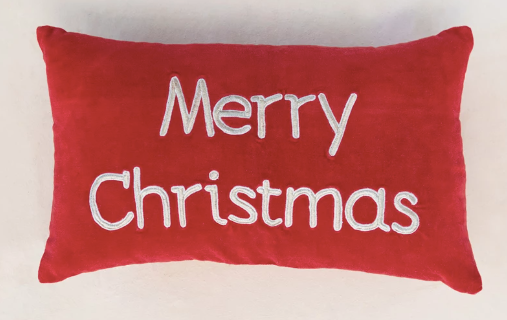 20" x 12" Cotton Velvet Lumbar Pillow with Embroidery "Merry Christmas"