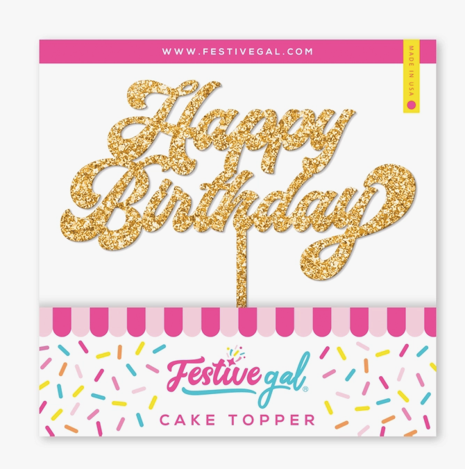 Happy Birthday Gold Glitter Cake Topper