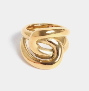 She’s got moves you’ve never seen! Our best selling cobra ring is the head-turning cocktail ring of every it girl’s dream. Made of interlocking curves, cobra is perfect to wear on its own, or stack with other bands — we highly recommend melrose and crown! Hypoallergenic and water resistant, you can rock this statement piece all day long, without fear of using water, lotions, or oils. Highly recommend — 10/10. Top width: 0.8" Width of band: 0.25" Available in sizes 6, 7, 8 Material Hypoallergenic. Water resistant. Rust-resistant. Sustainable. Gold: 14k-plated stainless steel. Silver: polished stainless steel. Signature mc engraving for authenticity. Care All Marrin Costello collection jewelry is crafted of a hypoallergenic + water resistant + sustainable stainless steel base. When not worn, please store in a protected place and use a cleaning cloth to spot treat as needed.