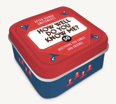 How Well Do You Know Me?: This deck of questions will reveal which friend or relation really knows you best. Bust it out to break the ice at a party, or take it along to the next family reunion—the players can decide whether to award points for accurate answers, or hilarious ones!