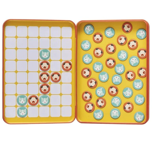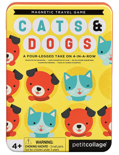 It's cats vs dogs in this four legged take on four in a row! Try to get four of your animal friend in a row to win in this Cats & Dogs Magnetic Travel Game!