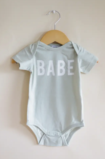 A new collection of BABE onesies in a neutral color palette for your baby boy or baby girl. Designed to spread joy to all, this baby bodysuit is the perfect baby gift. Here are the deets: - Super Soft 100% Organic Cotton - Gender neutral colors with soft tones - Runs true to size. 3mo fits more like a 0-3. - Preshrunk for easy laundry - - ethically sourced and sustainably produced from a GOTS Certified Organic factory in India. - Printed using eco-friendly water-based inks. Because of this ink color may slightly vary between garments. - Super soft, flexible lightweight material. - Metal three snap closure