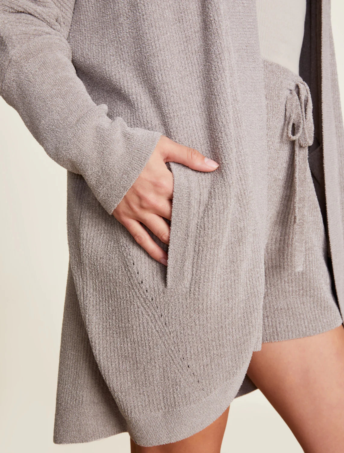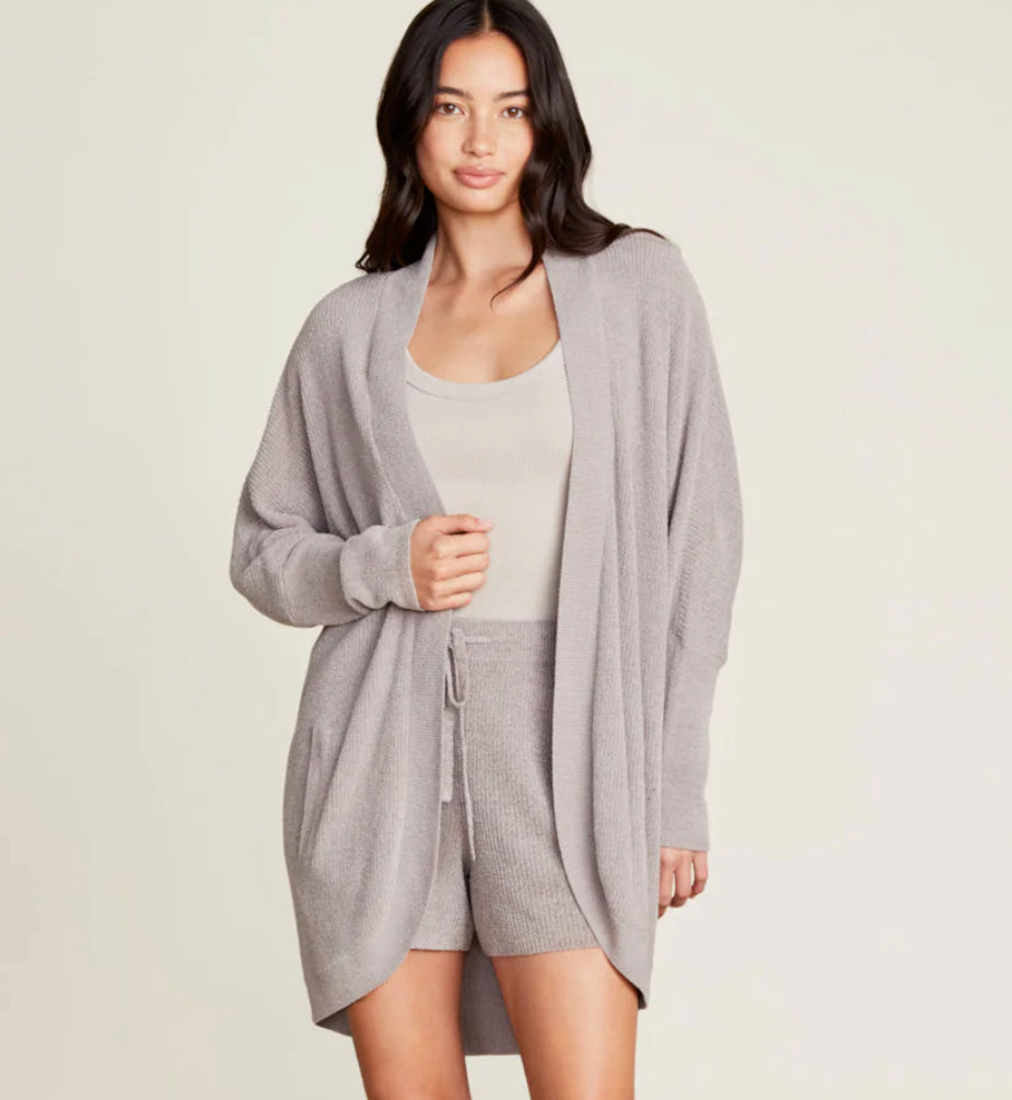 This Cozy Chic Ultra Lite Cocoon Long Cardi is the perfect piece to throw on for any occassion. This cardi has a circular, mid-thigh length hem with ribbing throughout and pointelle stitch details at sides. With welt pockets and stylish sleeve cuffs, this piece will become a staple. Model is 5’8” and wearing a size S.
