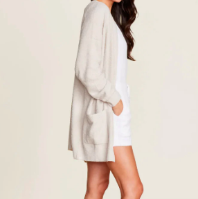 This buttery-soft cardigan features an easy-to-wear relaxed fit and drop shoulder, making it one you will want to wear everyday. This open-front style has rib detailing that meets at the back in a V-shape and naturally hikes in front for a flattering fit. Front patch pockets and rib finishes throughout makes it the perfect cardi to turn any outfit chic. Model is 5’8” and wearing a size S.