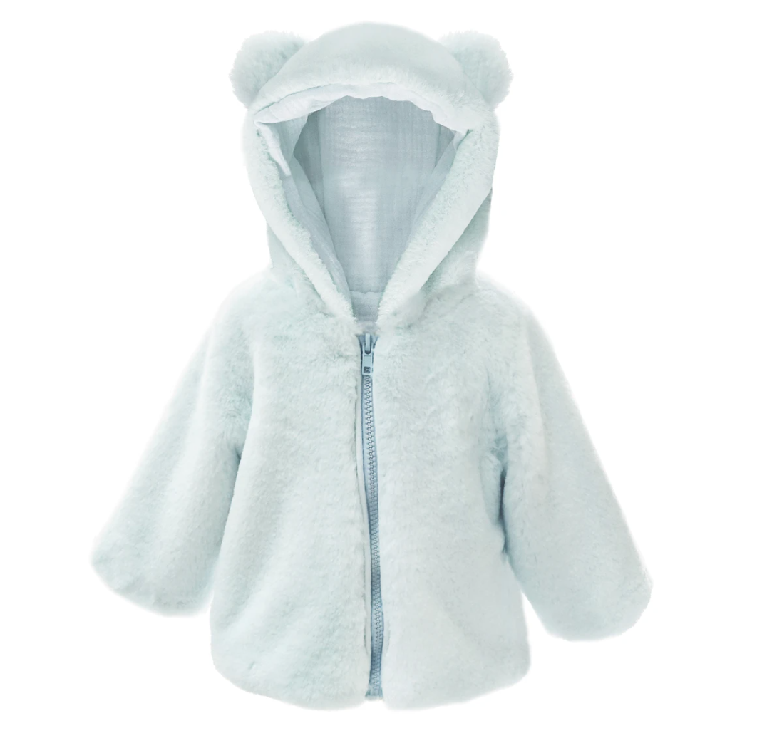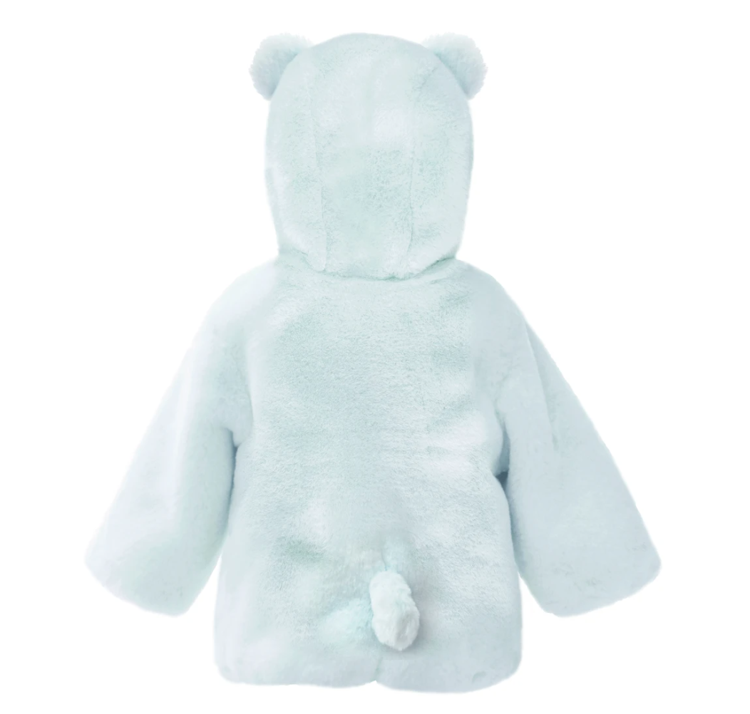 MON AMI luxe faux fur keeps baby warm and snug. 100% cotton muslin lining is soft and breathable against baby's tender skin. Comes on a beautiful matching padded hanger. Turn me around feature with cute animal tail on the back, and 3D ears on the hood.