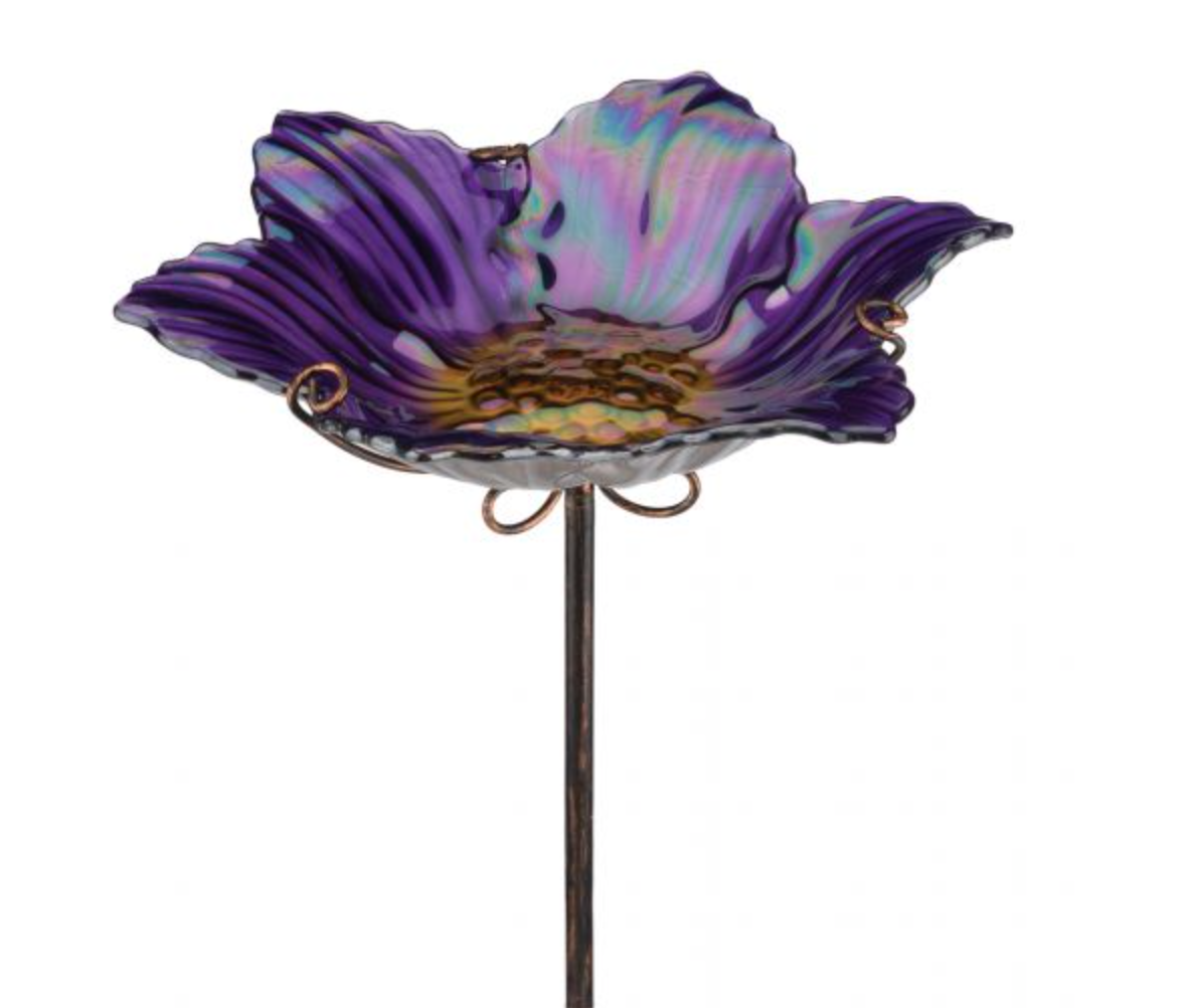 This beautifully crafted art glass bowl birdbath/feeder stake stands proud with a stable 3-pronged base providing the perfect area for feathered friends to visit! Offering the choice to be used as a birdbath or bird feeder.
