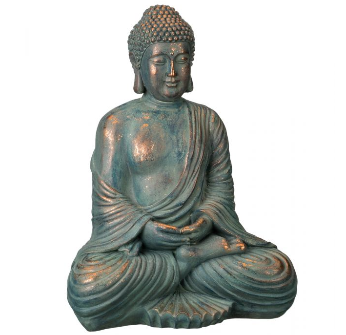 Fashionable tranquility is presented in this beautiful Copper Patina Buddha. The copper patina finish is hand-painted and enhances the elaborate detail of the piece. Cast using a magnesium oxide formula makes this statuary durable and lightweight for shipping and for ease of placement.