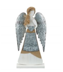 Galvanized metal, burlap accents and jute hair on a white wash wood body, make these classic Country Angels special. Comes in two sizes.