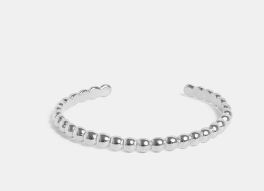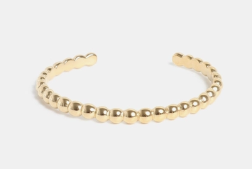 At Marrin Costello jewelry — every season is cuffing season. Our adjustable and one-size-fits all crown cuff 5mm is beautiful when worn on its own, and stunning when layered with a wristwatch. This luxe and comfortable bracelet is made with rounded 4mm circles on top and a smooth surface underneath. The most bold character in the crown collection — this piece is sure to be a conversation starter. 2.5" length Adjustable cuff opening Material Hypoallergenic. Water resistant. Rust-resistant. Sustainable. Gold: 14k-plated stainless steel. Silver: polished stainless steel. Care All marrin costello collection jewelry is crafted of a hypoallergenic + water resistant + sustainable stainless steel base. When not worn, please store in a protected place and use a cleaning cloth to spot treat as needed.