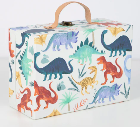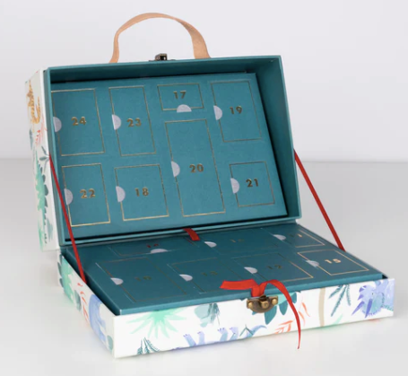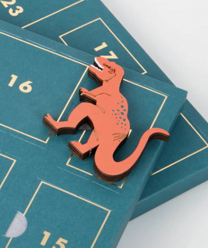 Dino lovers will absolutely adore this advent calendar - a gift to play with over the holidays and for years afterwards. It contains brightly colored wooden dinosaurs and foliage, and a cardboard scene. When playtime is done, all the pieces can be safely stored in the suitcase printed with a delightful dinosaur design.