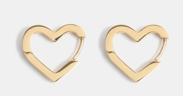 It’s all love over here! Our coveted heart-shaped motif is back and better than ever in an open and endless heart huggie design! With an invisible click hook hoop closure that is even comfortable enough to sleep in, this huggie is the perfect ‘grab-and-go’ earring set that will take you from day to night with ease and in style. Designer tip — rock this piece in consecutive earring holes for an unexpected edgy ear stack. Simply from the front, edgy and unexpected from the side — this heart duo is sure to become one of your everyday faves. 15mm Click-tension hinge closure— for pierced ears