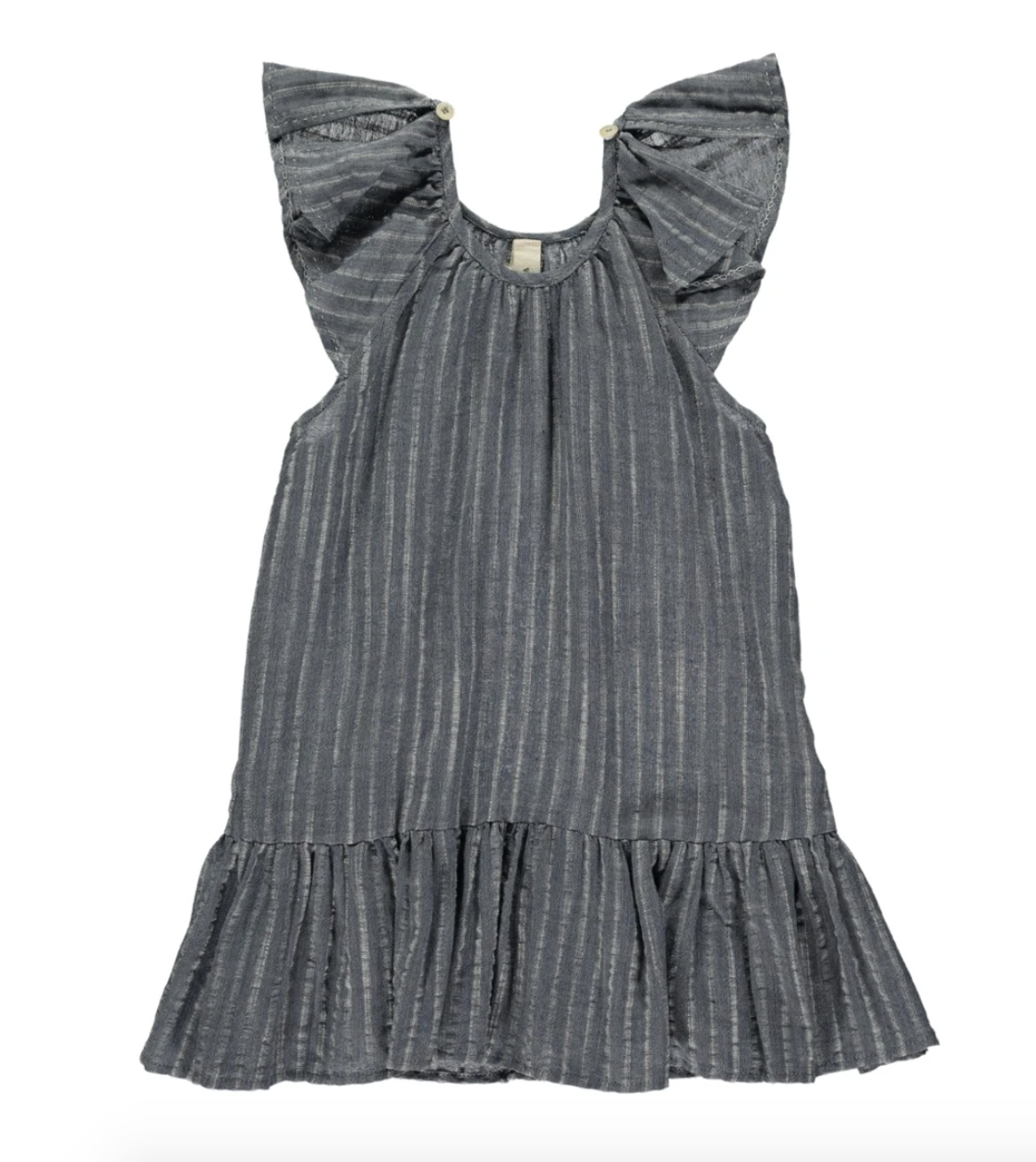 Contemporary and easy... with a flowing silhouette, accent stitching, flutter sleeve with button accent, and wide ruffle.