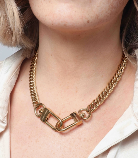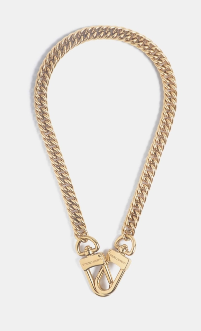 You asked, we answered. Meet the first multi-use purse chain that also doubles as a necklace *and* a belt chain. A beautifully detailed braid chain finished with two statement hardware clasps, the gabriella chain is 18" of goodness that you can wear from day to night, from casual to dressy, and everything in between. For your cool girl era; you can thank us later. Xx Statement hinge closure 18" length Material Hypoallergenic. Water resistant. Rust-resistant. Sustainable. Gold: 14k-plated stainless steel. Silver: polished stainless steel. Signature mc engraving for authenticity. Care All Marrin Costello collection jewelry is crafted of a hypoallergenic + water resistant + sustainable stainless steel base. When not worn, please store in a protected place and use a cleaning cloth to spot treat as needed.