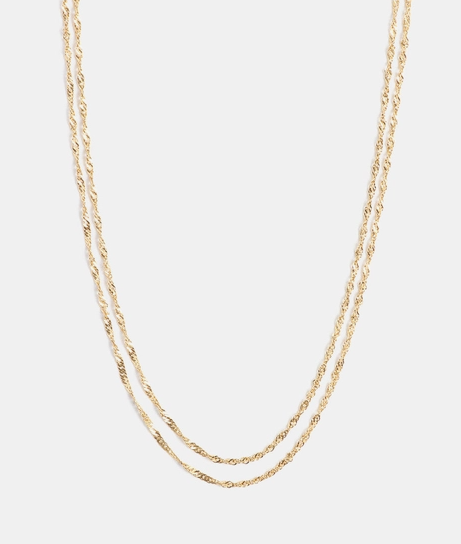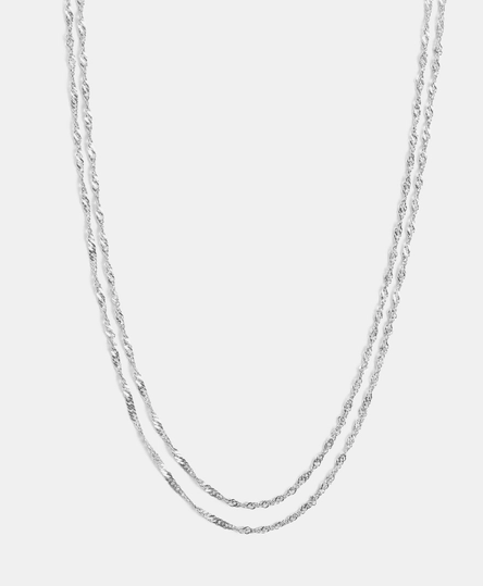 With two vintage-inspired dainty but durable twisted rope chains, this 2-in-1 necklace is that little extra sparkle that you’ve always dreamed of for your neck party. Beautiful and eye-catching when worn on its own, and stunning when layered with other pieces — you are sure to get a ton of wear out of the versatile and adjustable layered chain necklace. Designer tip — rock this piece with our other twisted pieces in the collection, including the rita hoops and helix chain 3mm for an unexpected but perfectly cohesive combination. Lobster clasp closure 14" length + 2" extender Material Hypoallergenic. Water resistant. Rust-resistant. Sustainable. Gold: 14k-plated stainless steel. Silver: polished stainless steel. Care All Marrin Costello collection jewelry is crafted of a hypoallergenic + water resistant + sustainable stainless steel base. When not worn, please store in a protected place and use a cleaning cloth to spot treat as needed.