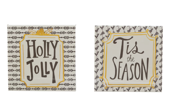 These matchboxes are an adorable addition to any festive home, and are an easy gift for the holiday season. There are 2 styles of matchboxes with safety matches inside, and they each have a holly pattern with a holiday saying. Perfect for lighting any candles during the holiday season.