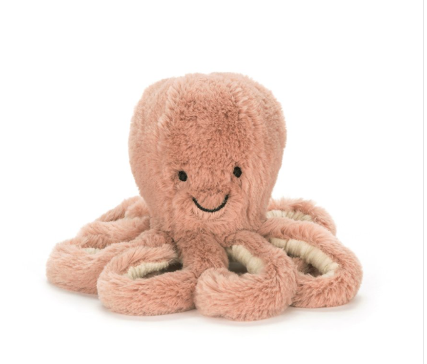 Get tangled up with gorgeous Odell Octopus! A squishy, splendid apricot octopus, she has so much love to give! Smiley and silly, with bright, glossy eyes, she's a very friendly cephalopod. Odell has eight fine, curly arms with cosy cordy and classic fur. No surprise that she gives the best hugs in the ocean!