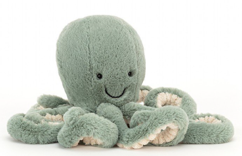 Dive to the depths for high adventure with wonderful Odyssey Octopus! Squishably soft in sea-moss green, with eight super-squiggly springy arms, Odyssey loves to give cordy cuddles. A splendid friend for any merfolk!