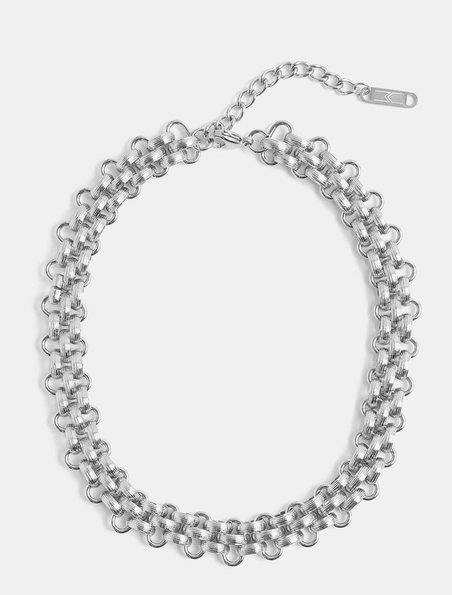 Meet the bold and confidant lattice xl choker. Light in weight but heavy in design, the brushed textured detail on each link nods to the necklace’s regal aesthetic. Rock this piece with a t-shirt and jeans or an lbd — this versatile and adjustable choker will elevate every single outfit in your wardrobe. Designer tip — layer the lattice xl choker with her smaller counterpart (the lattice choker) and a piece from one of our zodiac collection for even more texture and visual interest! 13" length + 3.5" extender Lobster clasp closure Material Hypoallergenic. Water resistant. Rust-resistant. Sustainable. Gold: 14k-plated stainless steel. Silver: polished stainless steel. Care All Marrin Costello collection jewelry is crafted of a hypoallergenic + water resistant + sustainable stainless steel base. When not worn, please store in a protected place and use a cleaning cloth to spot treat as needed.