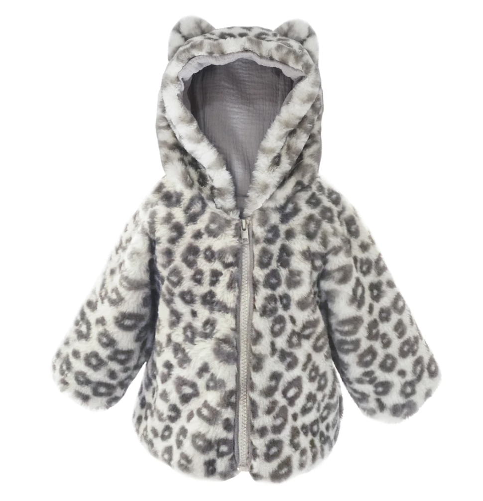 MON AMI luxe faux fur keeps baby warm and snug. 100% cotton muslin lining is soft and breathable against baby's tender skin. Comes on a beautiful matching padded hanger. Turn me around feature with cute animal tail on the back, and 3D ears on the hood.