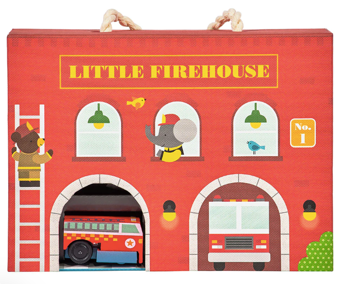 Help is on the way! Wind up the fire engine and watch it zip around the fire station with this little Wind-Up and Go Play Set from Petit Collage! Perfect for hours of imaginative play, the set is also easily portable with a cotton cord handle for on-the-go fun.