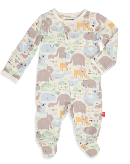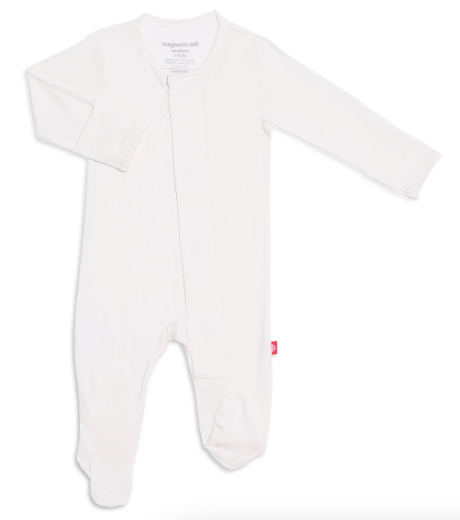 A soft, stylish all-day and all-night wardrobe staple with smart magnetic fasteners that makes changing time painless. With our no over-the-head design, simply open the outfit, insert baby, and BOOM, DONE! - the footie practically closes itself. Machine wash as directed.