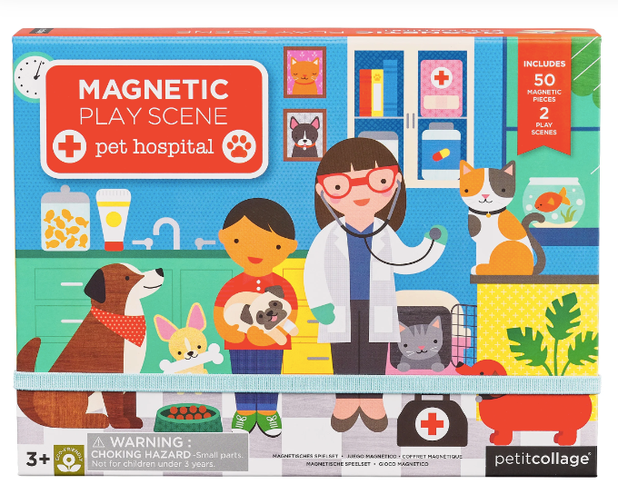 Decorate scenes of sweet animals being cared for at the vets with this Pet Hospital Magnetic Play Scene from Petit Collage.