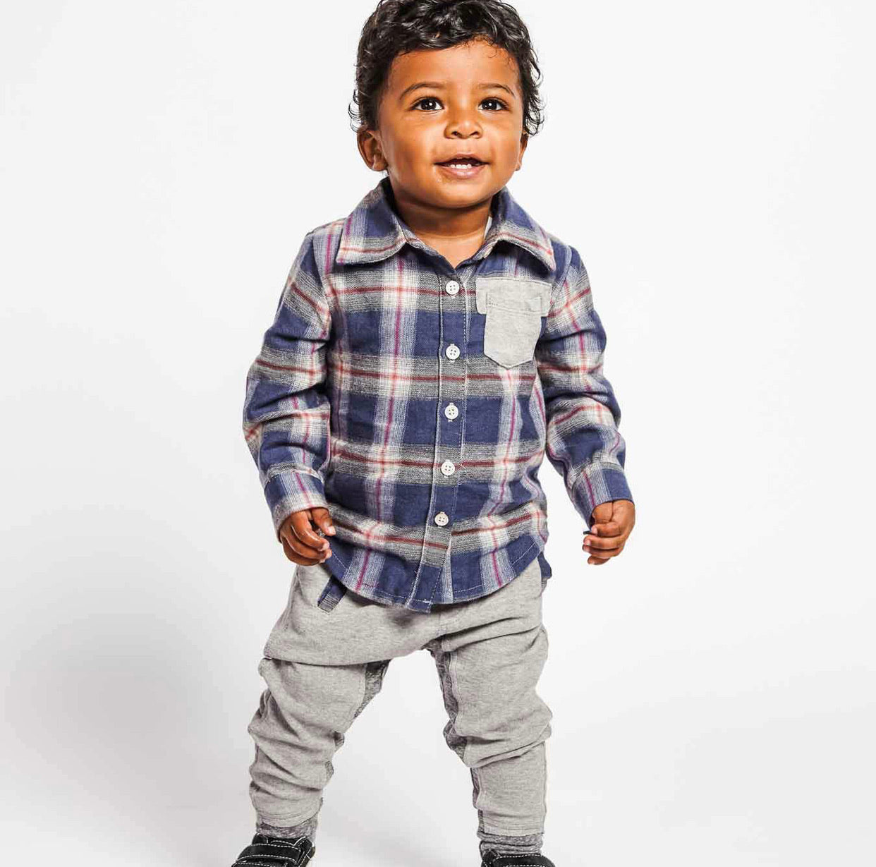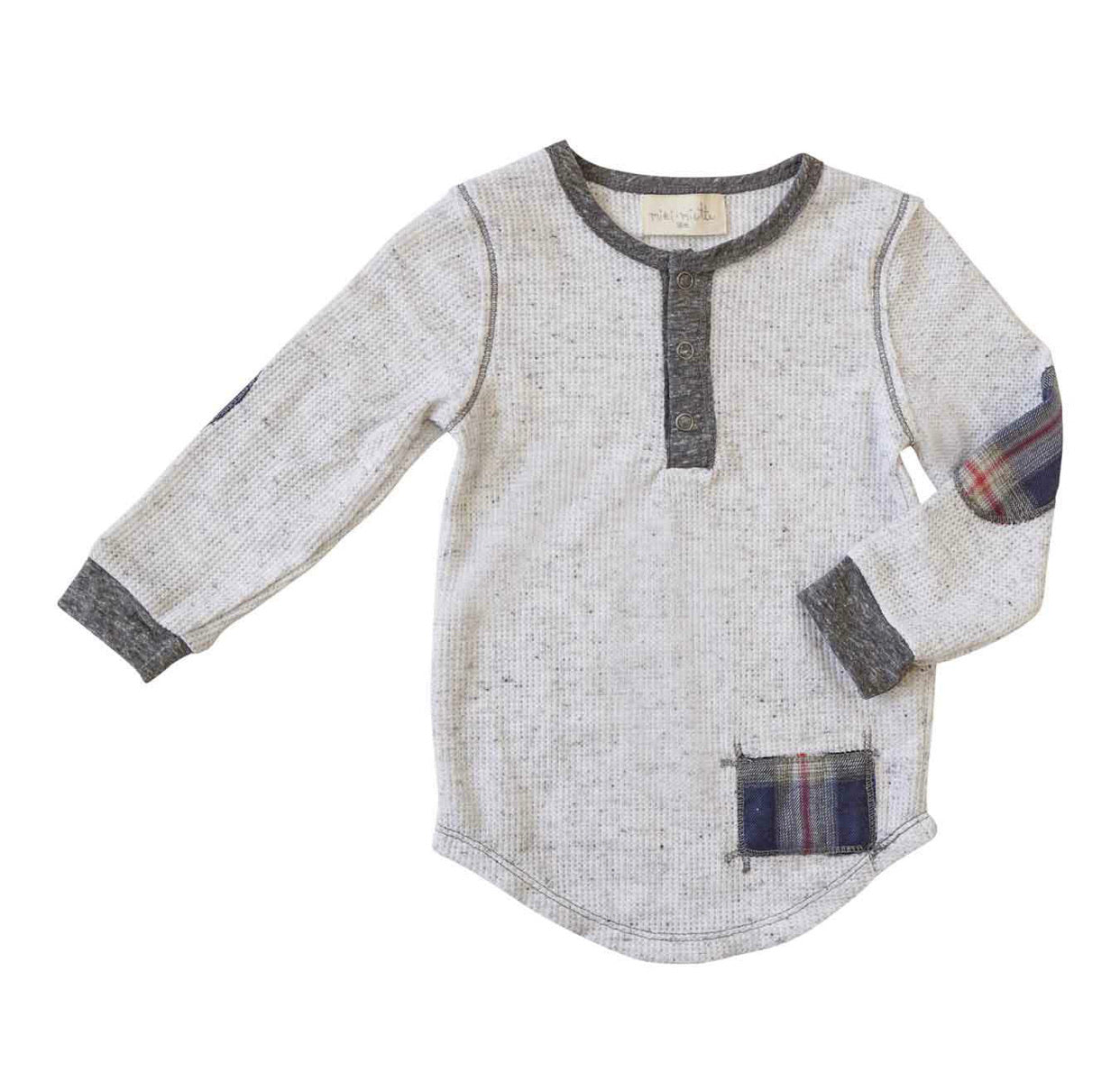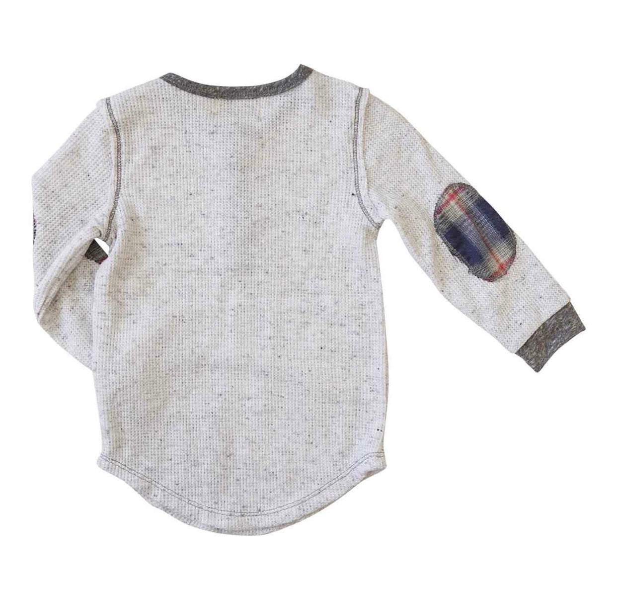 PARKER HENLEY: Made from soft French terry, this long sleeve thermal henley has always been a popular staple every Fall. A perfect piece that goes with everything, it's the best basic with a little touch of plaid for your little one!