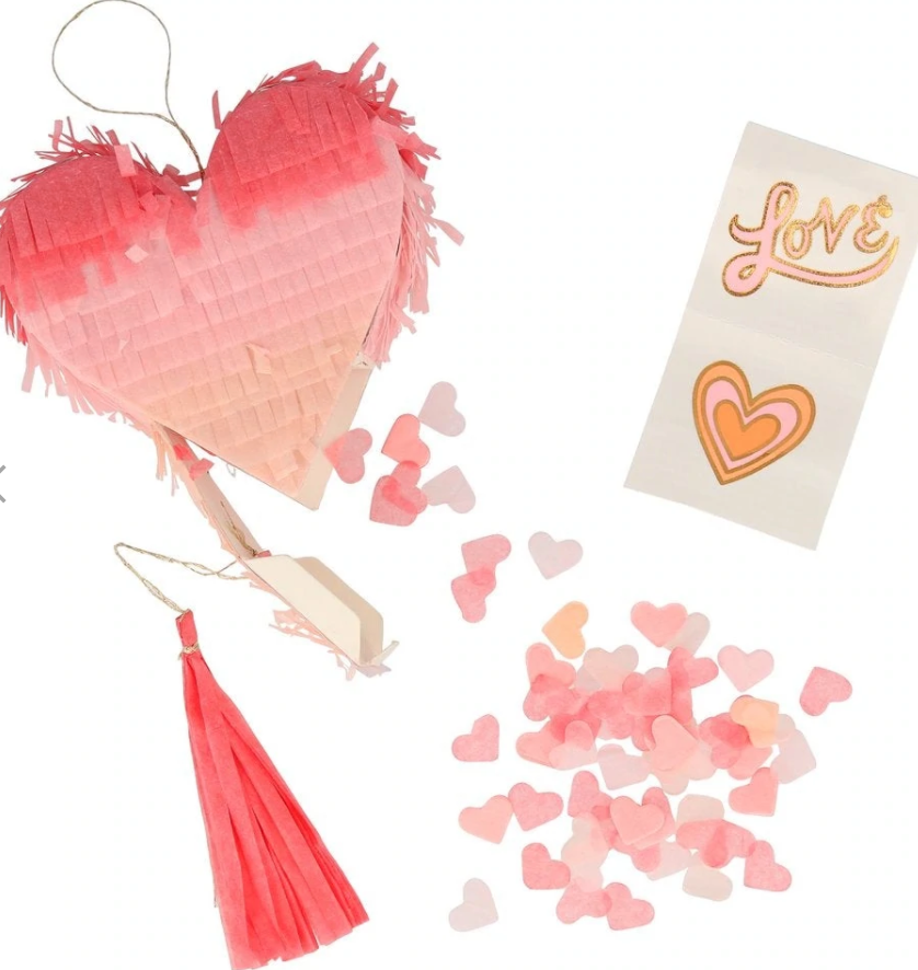 - Open the favors to reveal heart-shaped confetti and 2 temporary tattoos, one in the shape of a heart and one that says “Love”