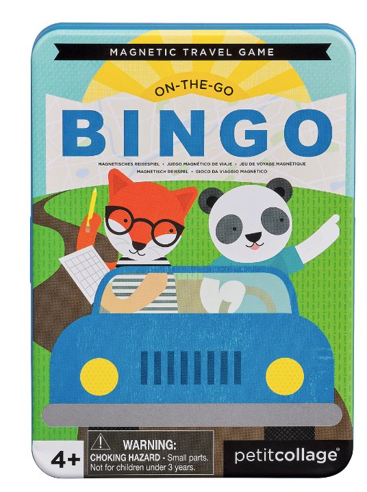 This On-the-Go Bingo Magnetic Travel Game from Petit Collage provides a magnetic twist on the classic game of Bingo! Spot a motorcycle, see a bridge, and mark it on your bingo sheet as you go. Keep your eyes peeled and enjoy the ride!